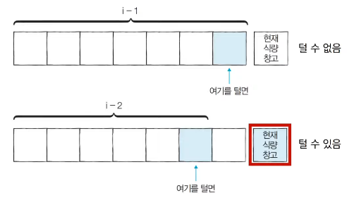 - 왼쪽부터 차례대로 식량창고를 턴다고 했을 때, 특정한 i번째 식량창고에 대해서 털지 안 털지의 여부를 결정하면, 아래 2가지 경우 중에서 더 많은 식량을 털 수 있는 경우를 선택하면 된다.