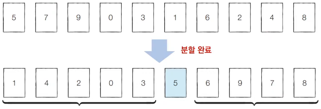 - 한 번 기준 원소(Pivot)가 자리를 변경해서 자리를 잡으면 그 기준 원소의 위치는 바뀌지 않는다.